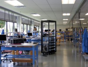 Our Technology Integration Center is fully equipped with power buses and network switches at each workstation, enabling each technician and engineer to operate independently. Its flooring is permanently coated with electrostatic discharge material to prevent damage to systems and components. Each workstation and burn-in rack is also static dissipative and fully grounded to protect against possible static electricity damage.