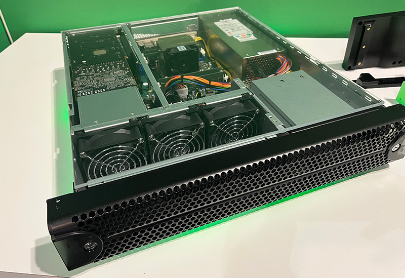 The display shows two sizes of our custom rack mount compute for image generation, 2U and 4U. The 4U is our custom USA made chassis in our efforts to support Buy American.