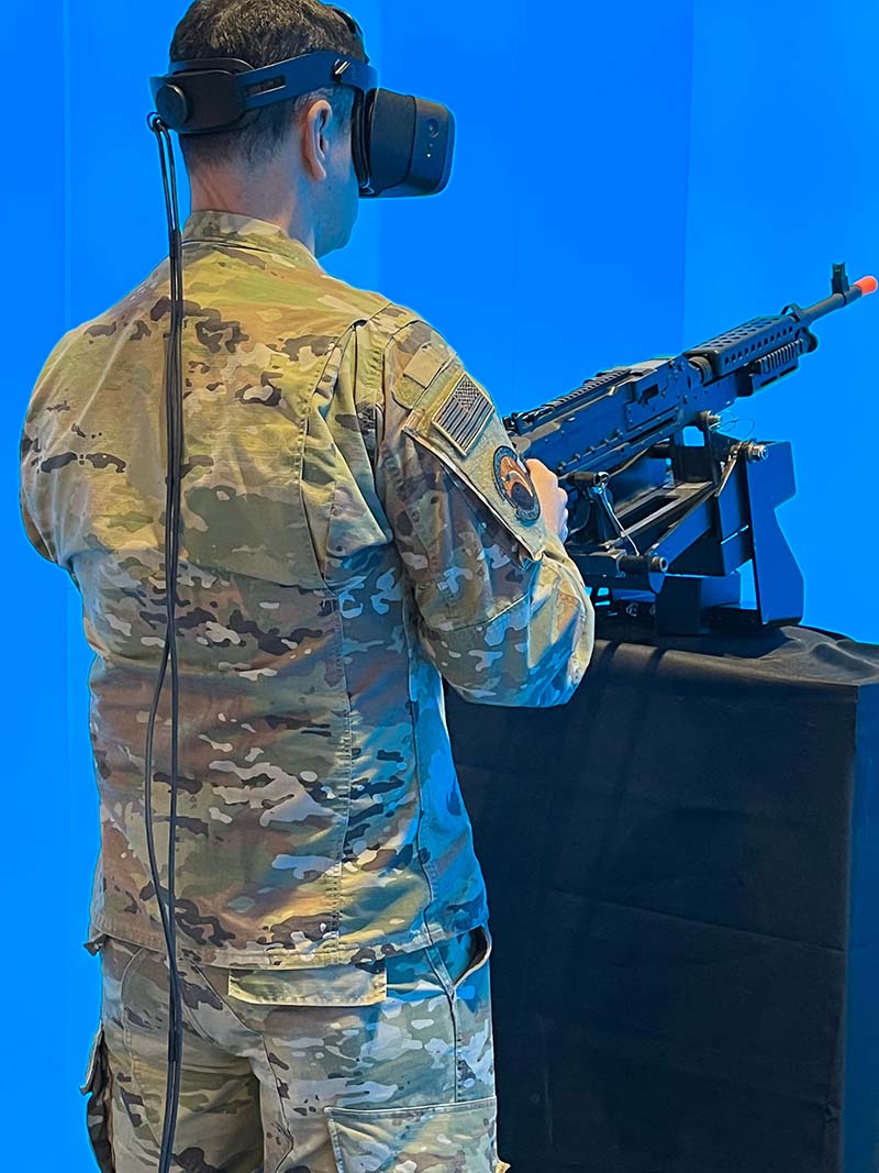 The Varjo XR-3 professional series headset provides the extended reality visual interface at high fidelity with a wide field of view. The RAVE Tower provides the compute powering both the image generation and associated computation. This gunnery training solution demonstrates the near term potential of a 5G wireless solution for collective training at a commercial cost point. The key difference is the integrated solution bringing optimization to all three critical components for maximum training value at lowest cost.